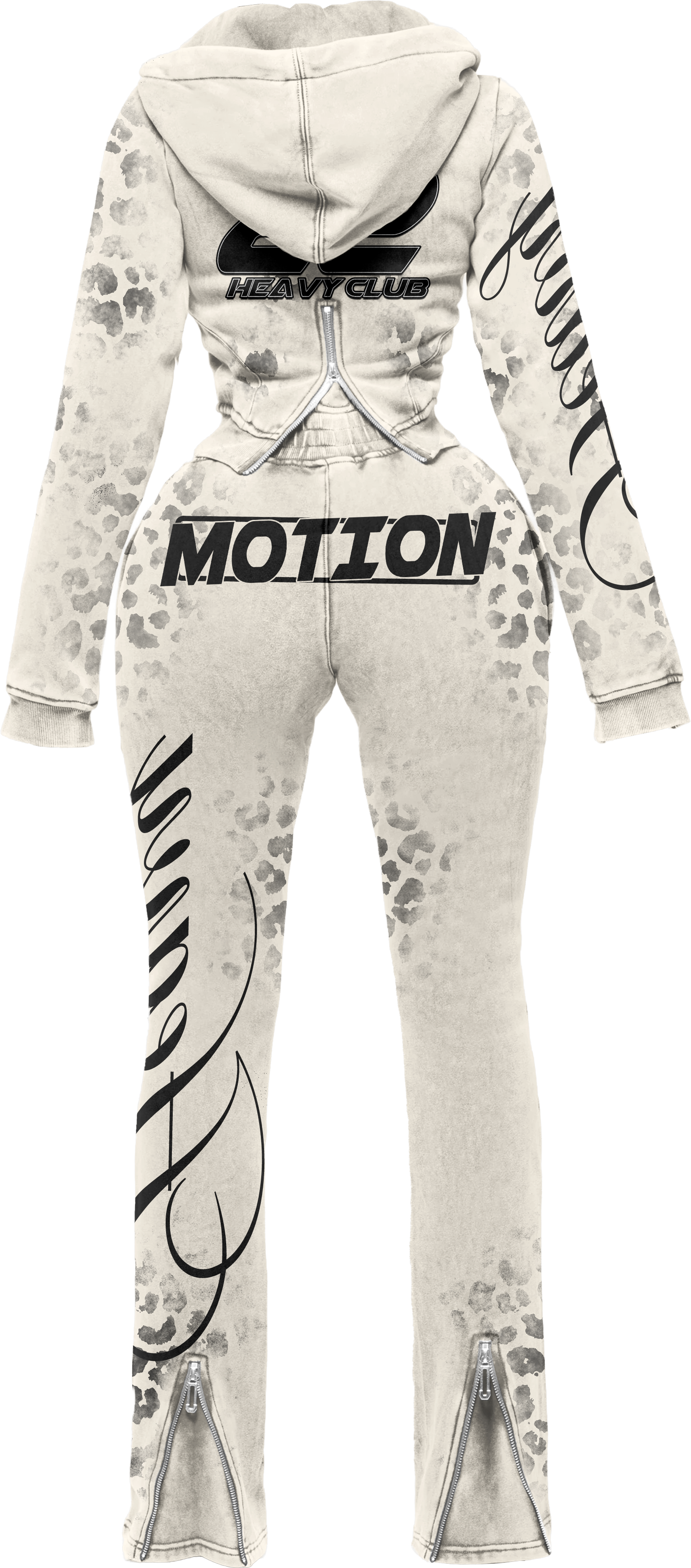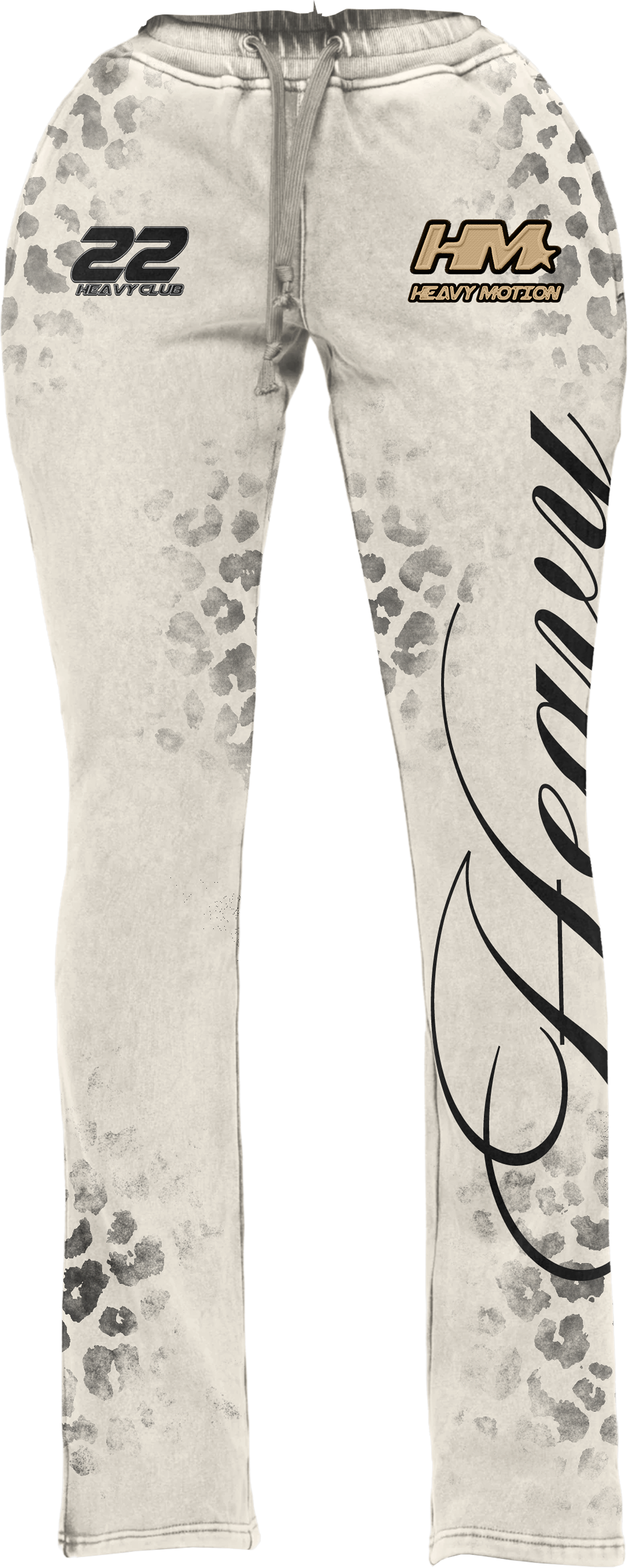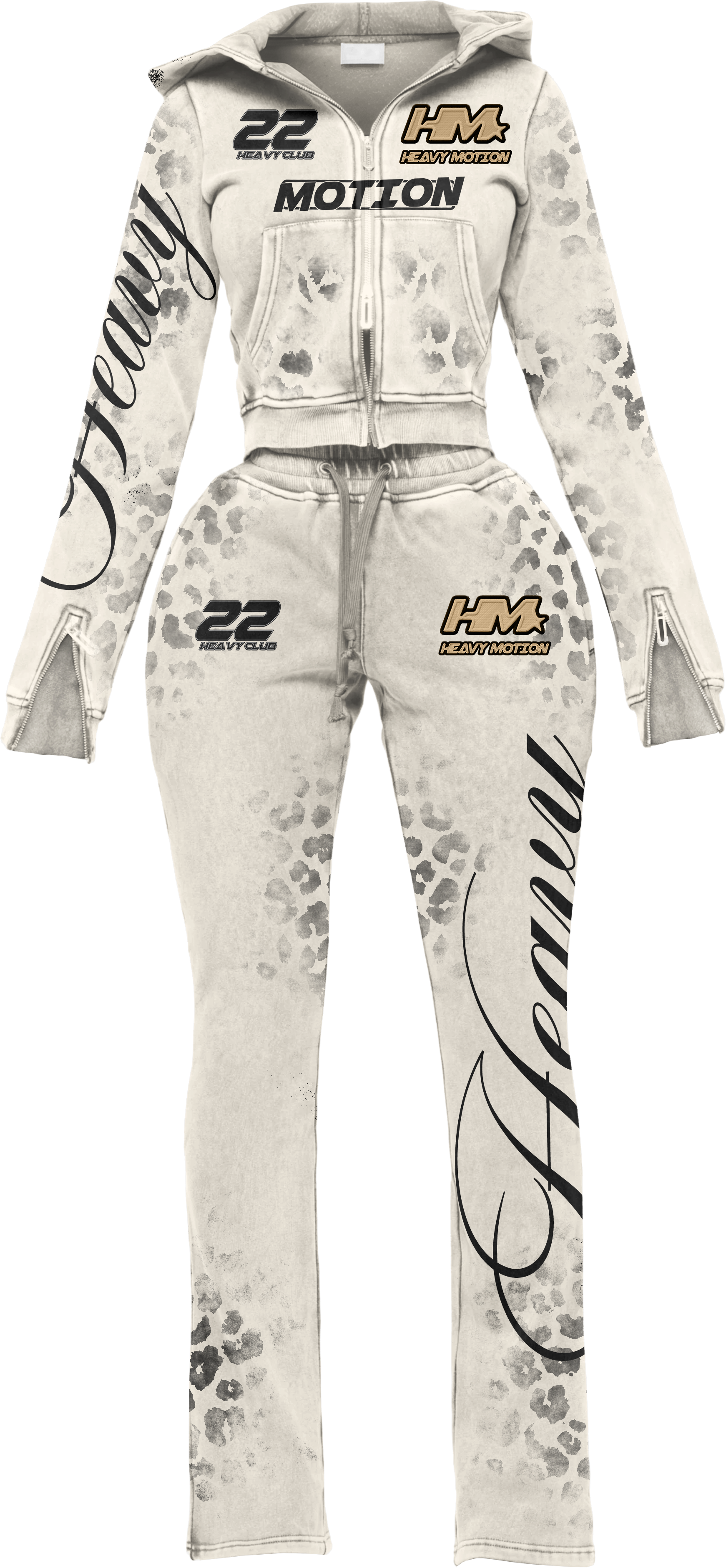 The Heavy Club Signature Sweat Set in Cream brings a soft but bold vibe. The cropped hoodie hits the waist just right, featuring a smooth arm zipper, washed leopard detailing, and strong Heavy Club branding. The straight-leg pants complete the outfit with the same clean wash and feminine streetwear energy. It’s flattering, comfy, and effortless — the type of set you can throw on and still look put together.